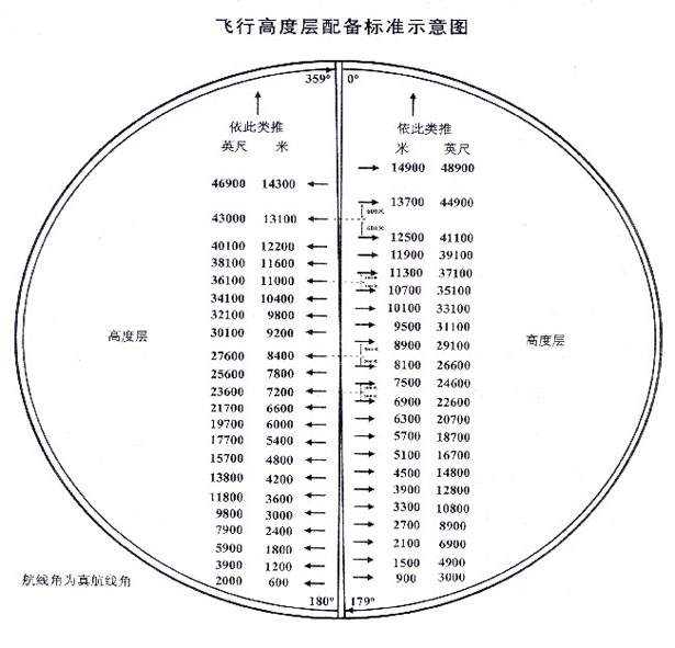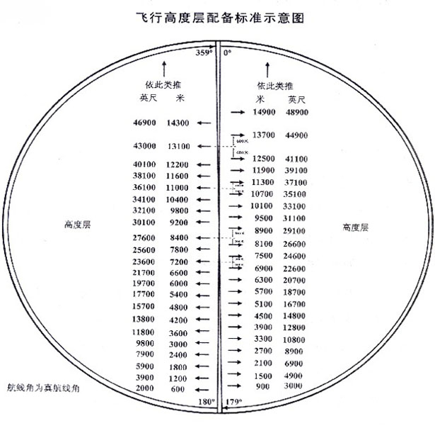 第二项修改为:“真航线角在180度至359度范围内,高度由600米至8400米,每隔600米为一个高度层;高度由9200米至12200米,每隔600米为一个高度层;高度在13100米以上,每隔1200米为一个高度层。”